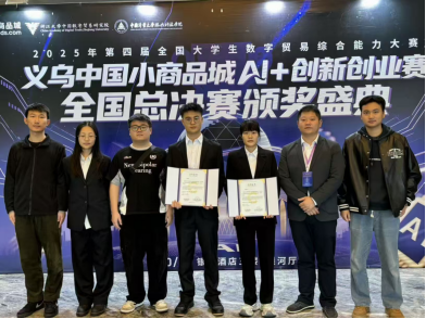 2025年10月22日至24日,由浙江大学中国数字贸易研究院发起、全国大学生数字贸易综合能力大赛组委会承办、义乌中国小商品城独家冠名的第四届全国大学生数字贸易综合能力大赛总决赛在浙江义乌举行。经济与管理学院2支研究生队伍在肖黎教授和屈瑜君教授的精心指导和团队成员的精彩表现下,最终斩获二等奖1项、三等奖1项,1支队伍被评为“义乌AI创业之星”。