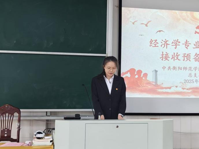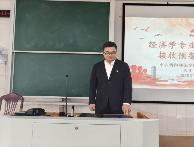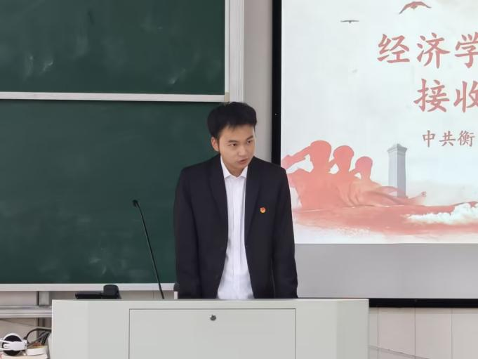 经济学专业学生党支部书记陈志鹏老师发表讲话。陈老师结合预备党员考察期的重要性,提出三点明确要求:一是持续深化理论武装,筑牢信仰之基。要更加系统、深入地学习党的创新理论,深刻领会其核心要义和实践要求,做到在党言党、在党忧党、在党为党。二是时刻牢记党员身份,发挥先锋作用。预备期是进一步接受组织考验、锻炼提升的重要阶段。要以正式党员的标准更加严格地要求自己,在学习、工作、生活等方面走在前、作表率。要勇于承担急难险重任务,在服务同学、服务集体中展现新作为,用实际行动擦亮党员身份;三是自觉接受组织考验,主动汇报思想。要更加主动地向党组织汇报自己情况,积极参加党的组织生活,自觉接受党员和群众的监督。对于组织指出的不足,要虚心接受,深刻反思,及时改进,不断完善自我。