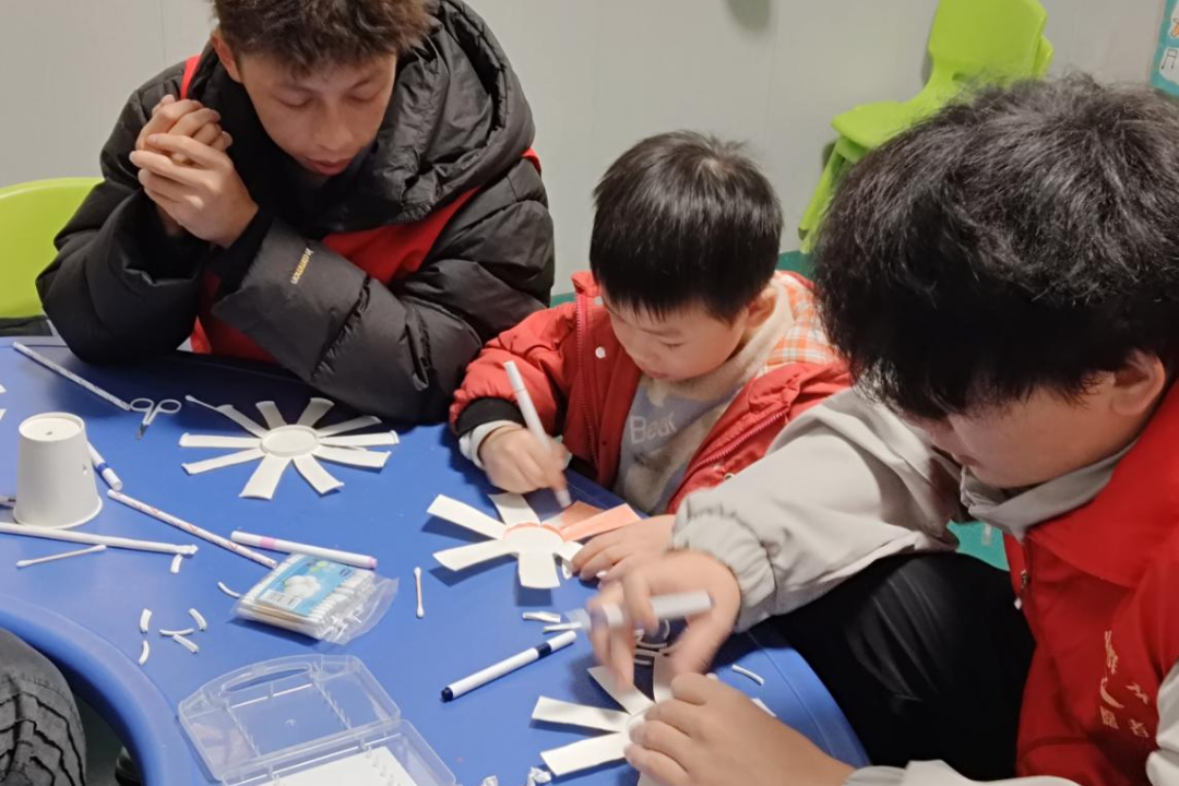 活动现场,志愿者们提前备好纸杯、胶棒等手工材料,耐心讲解制作步骤,手把手指导孩子们完成作品。从起初的无从下手到逐渐熟练操作,再到成功做出生动可爱的手工作品,孩子们在志愿者的陪伴与鼓励下,慢慢绽放自信笑容。这场趣味十足的手工互动,不仅锻炼了孩子们的动手能力,更在协作中拉近了心与心的距离。