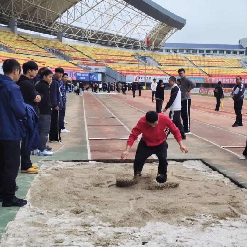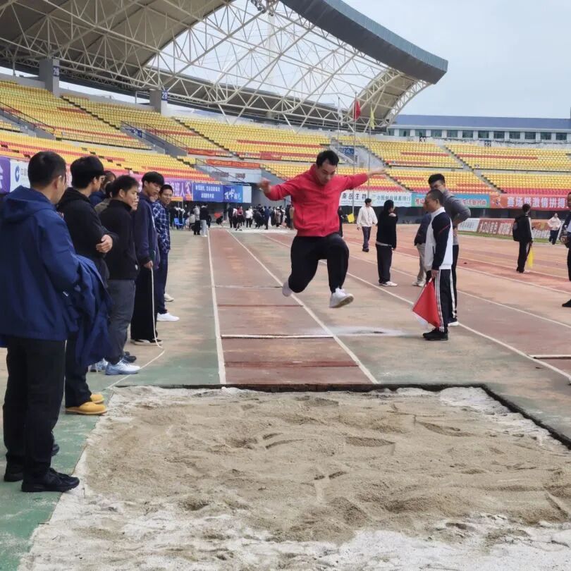 积蓄全身力量,奋力一跃,将身体的潜能与速度完美地展现在沙坑之上。