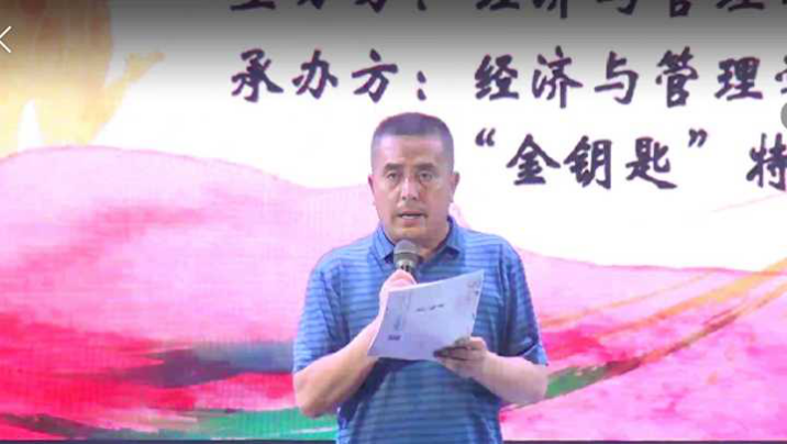 随后,经济与管理学院党总支廖新平书记为晚会致辞。他向即将毕业的同学们表示了热烈的祝贺,同时也对培育英才的老师们表达了崇高的敬意。此外,他还寄语毕业生们,希望他们牢记“厚德、博学、砺志、笃行”的校训,并围绕应时刻保持一颗进取之心、责任之心与豁达之心展开了论述,表达了对毕业生们的美好希冀与殷切期望。