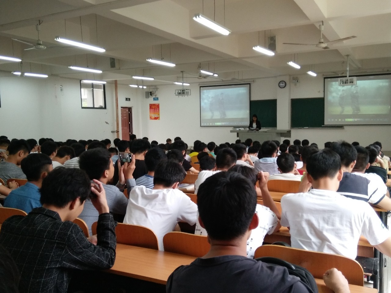 斗志激昂的征兵宣传片《天南海北兵》拉开了本次会议帷幕,接下来彭雁老师就2017年的征兵报名流程、征兵待遇以及各类优惠政策一一向同学们做了介绍。