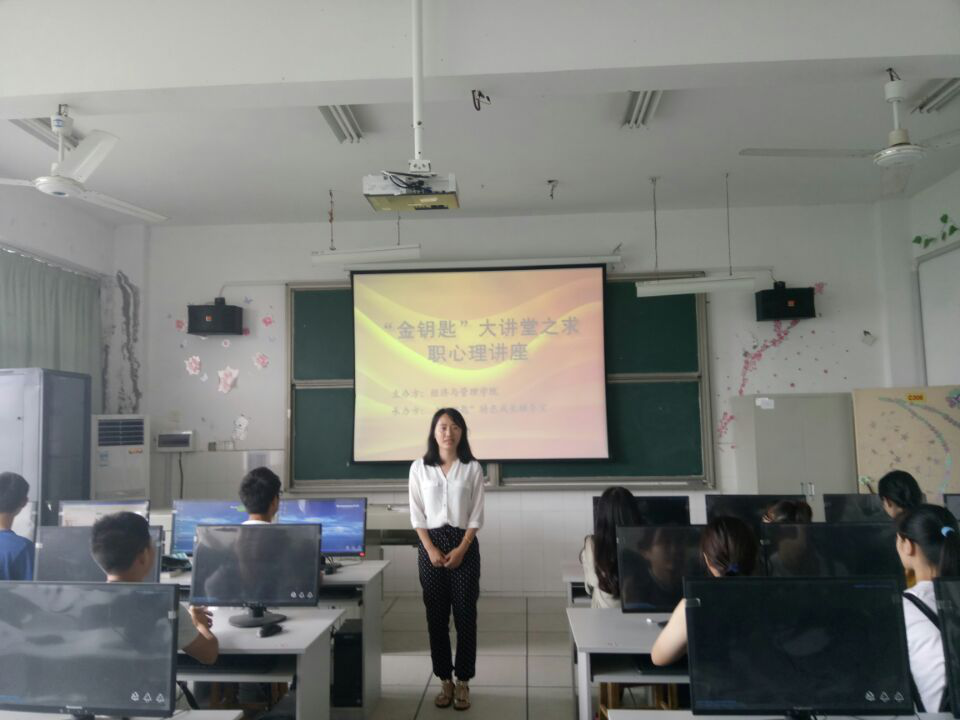 活动目的:大学生就业问题是社会普遍关注的焦点问题之一。大学生毕业人数逐年增长,用人单位对应届毕业生综合素质要求日益增高。大学生毕业后,一部分毕业生有自主创业意愿却因为面试紧张、缺乏求职经验举步维艰,错失良机。本次讲座为即将求职的学生进行一系列心理疏导,减少毕业生因心理问题而求职不成功的状况。