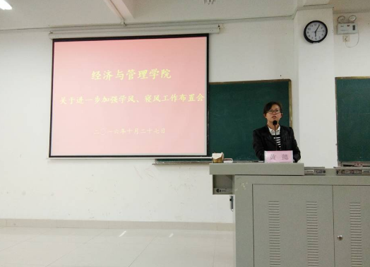 为了加强对我院学风、宿风的建设,营造良好的氛围,让学生干部做好带头模范作用。2016年10月27日下午6点,经济与管理学院在理科楼南112开展了关于进一步加强学风、宿风工作布置会。