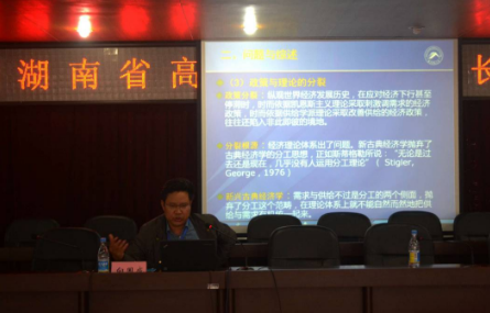 本次会议由陈英武教授主持,首先他对此次来会的各位嘉宾表示热烈的欢迎,同时也对我校的盛情款待表示衷心地感谢。接下来由衡阳师范学院校长皮修平为我们致词,皮修平校长从各个方面细述我校悠久的历史文化、优越的地理位置、底蕴深厚的人文情怀,并且也向各位嘉宾简要介绍了我校教学特点、科研成果以及办学规模等情况。皮修平校长对于此次论坛在我校举办表示感到十分荣幸,也对大家的到来表示热烈欢迎。当值理事长游达明教授在讲话中指出各院校在学术与管理上应多多交流,也预祝本次论坛可以取得良好的预期成果。在开幕式后的全体论坛中,中南大学商学院党委书记游达明教授围绕“突破性创新与我国标准化战略”这一主题做了相关报告。他首先为大家分析了国家标准化战略背景,提出在这种形式下我们更应该大力度进行标准化战略研究。他明确指出后发达国家实施标准化战略具有非常强的紧迫性,也分别分析了我国标准化战略的优势与存在的问题以及解决该问题的突破口。游教授的精彩的报告使大家对于“为什么要进行创新”有了更加深刻的理解。陈英武教授则结合自身经验讲述了“关于培养研究生的几点体会”,在面对研究生培养方面,陈教授也有着自己独到的见解。他从招生、分类指导、因材施教、“管与放”、个性化培养、“宽与严”、培养超越自己的学生以及优秀论文等方面阐述了他的经验启示和学术研究报告。他就“一个好的研究模式、一个好的态度、一个好的心态”等关于创新的三个层次再次进行了深入探讨。短暂的茶歇过后,李军教授为我们细数了“商科本科人才培养模式的反思“,他从人才培养这个角度全方位扩散,为我们讲述了人才培养的关键,以及如何培养创新型人才。他指出:高校转型,经济转型。只有培养创新型人才,培养特长型人才,培养特色型人才,才能更好的适合当今国际的需要。我们应该摒弃传统的教学模式,实现创新型教学方案。 紧接着向国成教授发表了主题为“实现经济的高质量稳定发展,基于新兴古典经济学视角“的报告,他分别从理论特色、问题与综述、新兴古典经济学、深化分工促进经济的高质量稳定发展等四个方面向我们阐述了他的观点,引人深思。最后由庞燕教授为我们总结了“面向国际物流的物流管理专业课程体系研究”这一主题报告,指出当前我国对外经济贸易正处于跨越式发展期,对外物流业呈现快速发展的格局,刺激了对外贸物流人才的需求,因此,研究和改革是必不可少的。庞燕教授还向我们展示了一些特色研究成果和改革实践的产物,也更加切实地反映了国际物流实践的重要意义。 此次论坛的成功举办为湖南省各高校商学院交流搭建了重要的平台,同时也加强了各院校学术与管理上的交流,为今后的学习提供了更为广阔的方向和思路。