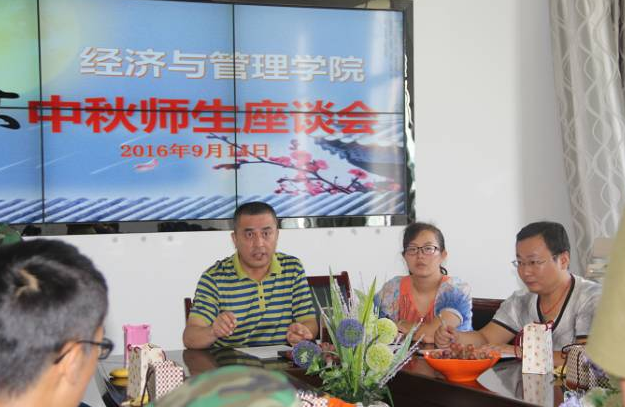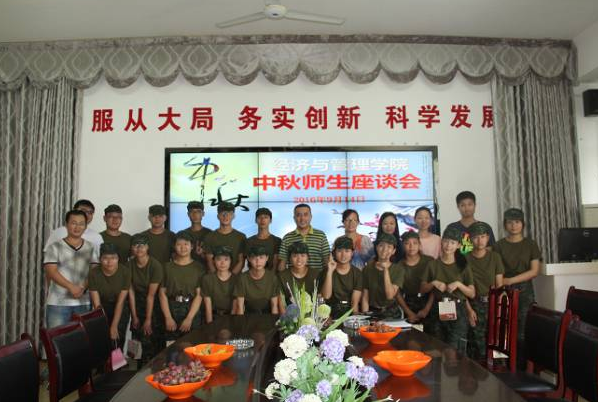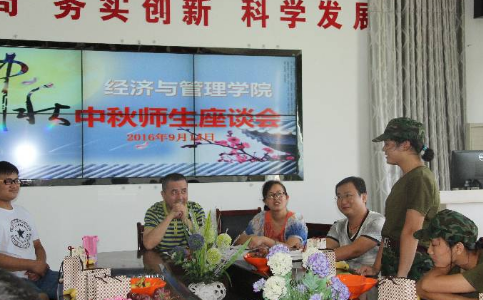 在中秋节即将来临之际,召开中秋师生座谈会,让家庭经济困难的新生们体会到集体的温暖和学校的关怀。经济与管理学院于2016年9月14日上午十点在文C五楼会议厅召开了中秋师生座谈会,与贫困新生进行深入交流。党总支书记廖新平,党总支副书记黄懿、辅导员吴瑶瑶、李湘龙、李翠、彭雁老师均出席了本次会议。