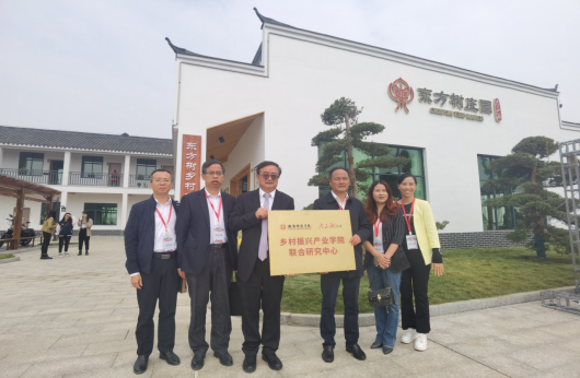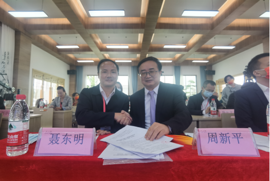 签约揭牌仪式在“大三湘”东方树庄园举行。签约揭牌仪式前,“大三湘”董事长周新平带领大家参观了“大三湘”东方树庄园,详细介绍了“大三湘”在贯彻落实扶贫攻坚、产业振兴、共同富裕等国家战略方面的经验做法,并特别介绍了推动油茶产业高质量发展的“大三湘庄园模式”。聂东明高度肯定了“大三湘”的“庄园发展模式”,并希望乘着党的“二十大”胜利召开的东风,双方携手共建“乡村振兴产业学院”。