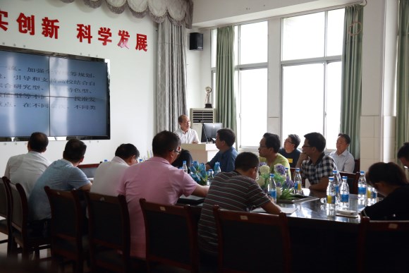 7月10日下午,经济与管理学院举行“优势特色学科”建设工作推进会。参加会议的有衡阳师范学院校长皮修平教授、副校长郑金华教授、学科办主任杨汉云教授、科技处处长罗李平教授、人事处处长尹季教授和衡阳师范学院经济与管理学院的全体教师。会议由经济与管理学院院长卜华白教授主持。